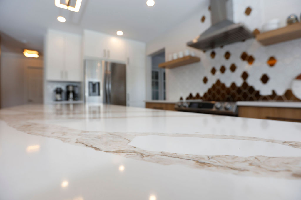 Sélection haut de gamme comprenant le quartz (durable et facile d’entretien), le granit (charme intemporel), le marbre (élégance luxueuse) et la porcelaine (un choix tendance et rafraîchissant).